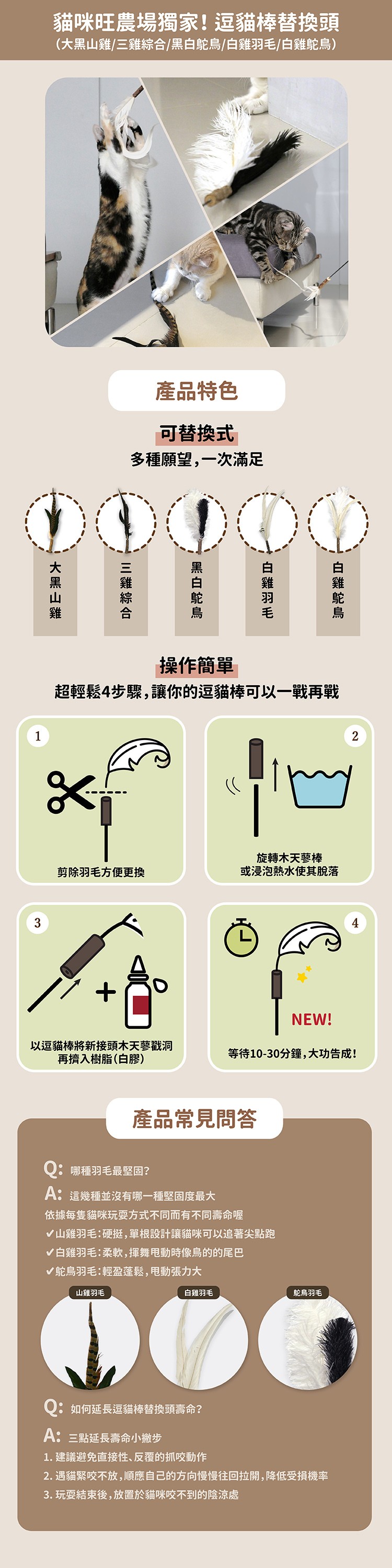 成分:木天蓼棒、白雞羽毛、鴕鳥毛、樹脂白膠